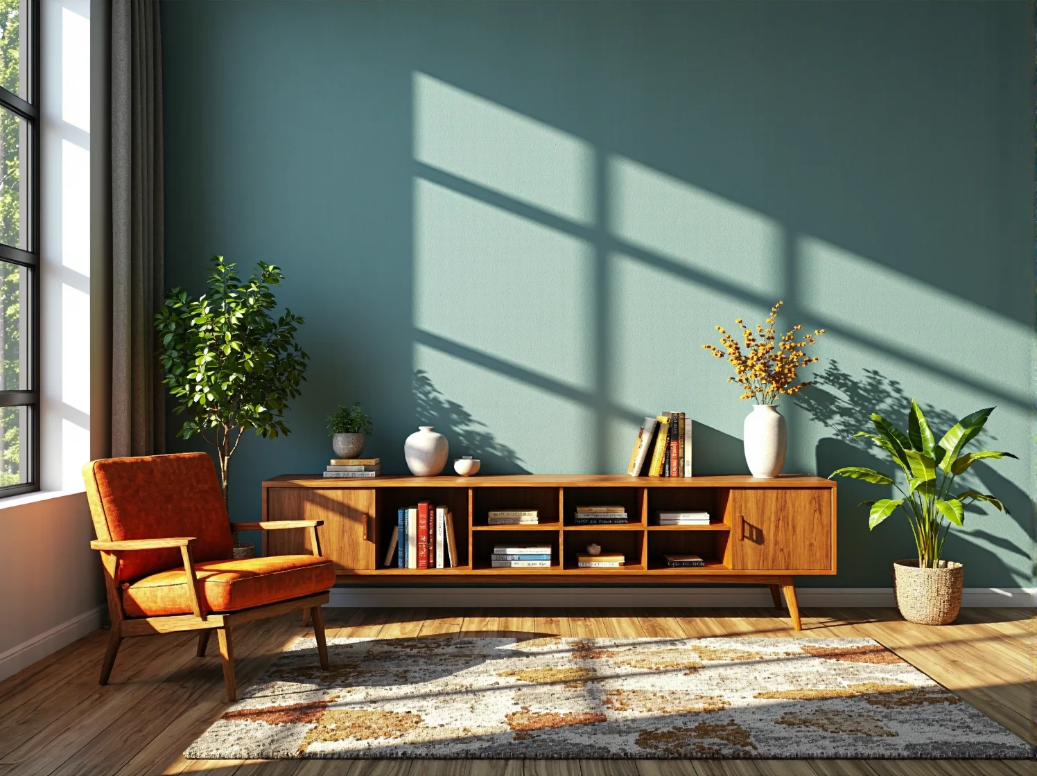 - Rośliny kaskadowe: Umieść na górnych półkach rośliny o wiszących pędach, takie jak scindapsus czy zielistka. Zieleń wspaniale komponuje się z drewnem retro i ożywia wnętrze.