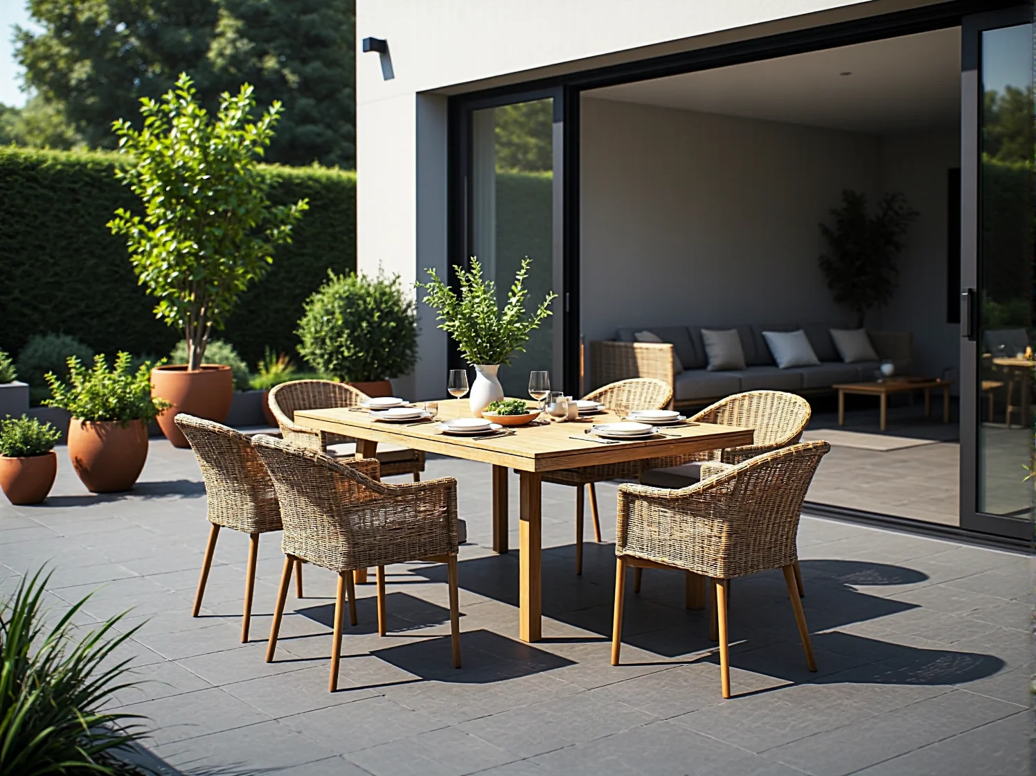 Jeśli dysponujesz nowoczesnym, minimalistycznym tarasem, postaw na stół o prostej linii z blatem imitującym beton lub kamień. W ogrodach o charakterze rustykalnym lub skandynawskim świetnie sprawdzą się modele łączące metalowy stelaż z drewnianym blatem.
