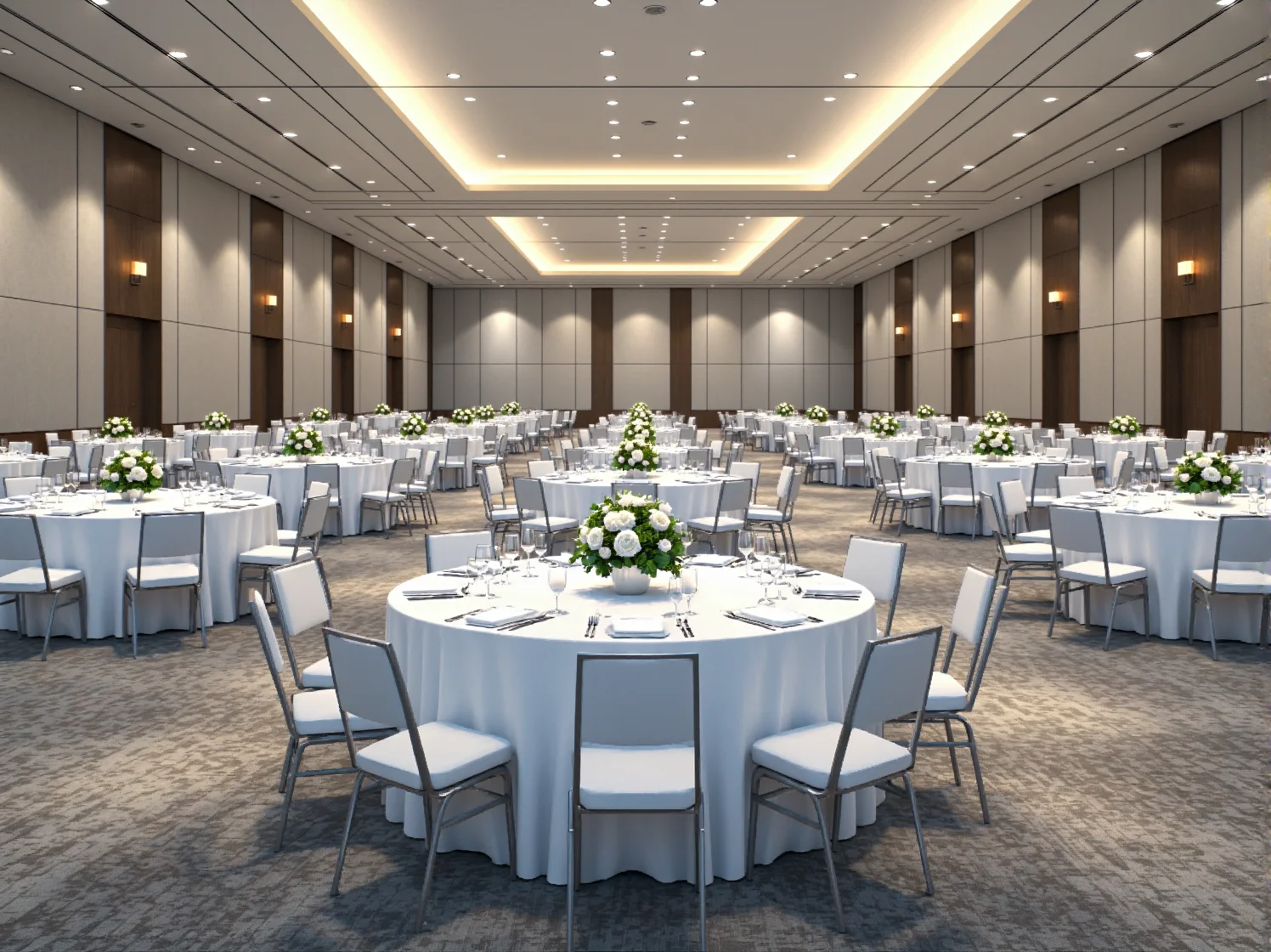 - Odstępy: Między stołami należy zachować minimum 150 cm przejścia, aby goście i obsługa mogli swobodnie się poruszać.